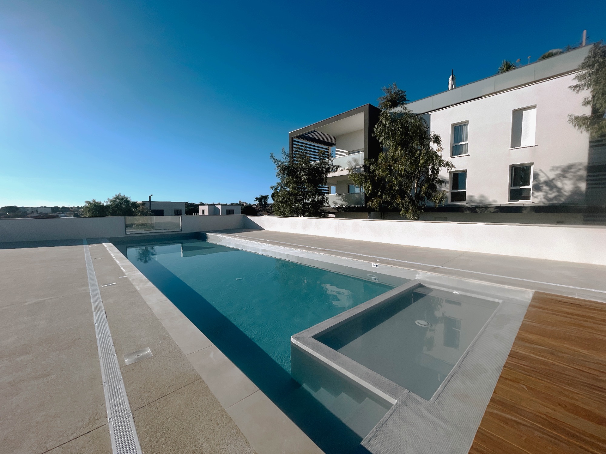 Au cœur de la résidence, les habitants profitent d’une élégante piscine collective privée, chauffée et accessible durant la période estivale, véritable invitation à la détente.